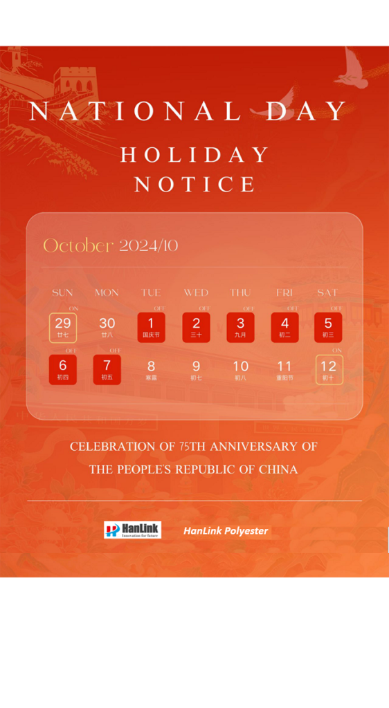 On this special occasion, HanLink Polyester once again wishes for the prosperity of our nation and the well-being of our valued customers!