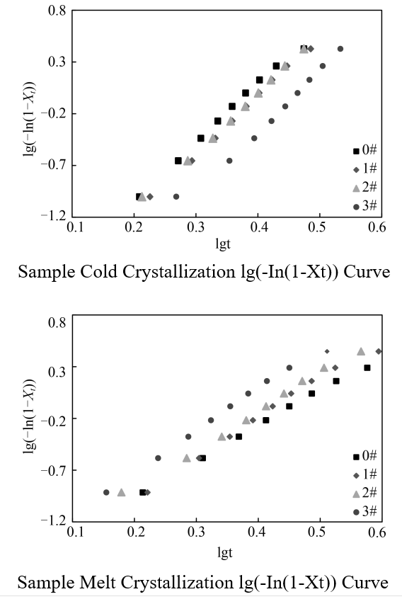 We found that when more silica was added to the film, the crystallization temperature of the matte polyester decreased. This means that the film started to crystallize at a lower temperature. Silica has different effects on cold crystallization and melt crystallization. As the amount of silica increased, the Avrami index (n), which relates to how the film crystallizes when heated, went up. At the same time, the half-crystallization time (t1/2), which measures how long it takes for the film to crystallize, went down. In simple terms, adding more silica made the film crystallize faster during the heating process.